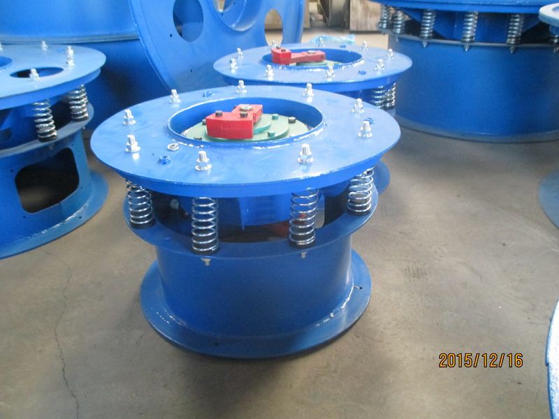 三次元振動篩旋振篩的動力源是振動電機,振動電機轉(zhuǎn)軸上下端安裝有偏心重錘,通過振動電機的旋轉(zhuǎn)運動在偏心重錘作用下轉(zhuǎn)變?yōu)樗健⒋怪?、傾斜的三維運動即三次元運動,旋振篩利用振動電機三維運動,通過旋振篩的彈簧和振動體把三維運動傳遞給振動篩網(wǎng)面。通過改變振動電機上下重錘的相位角來實現(xiàn)物料在篩面上的運動軌跡,以此達到篩分、去雜、過濾的目的。